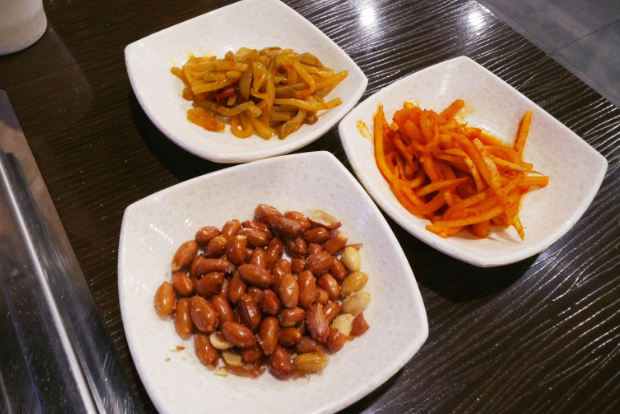 기본 밑반찬은 짜차이와 땅콩, 무생채