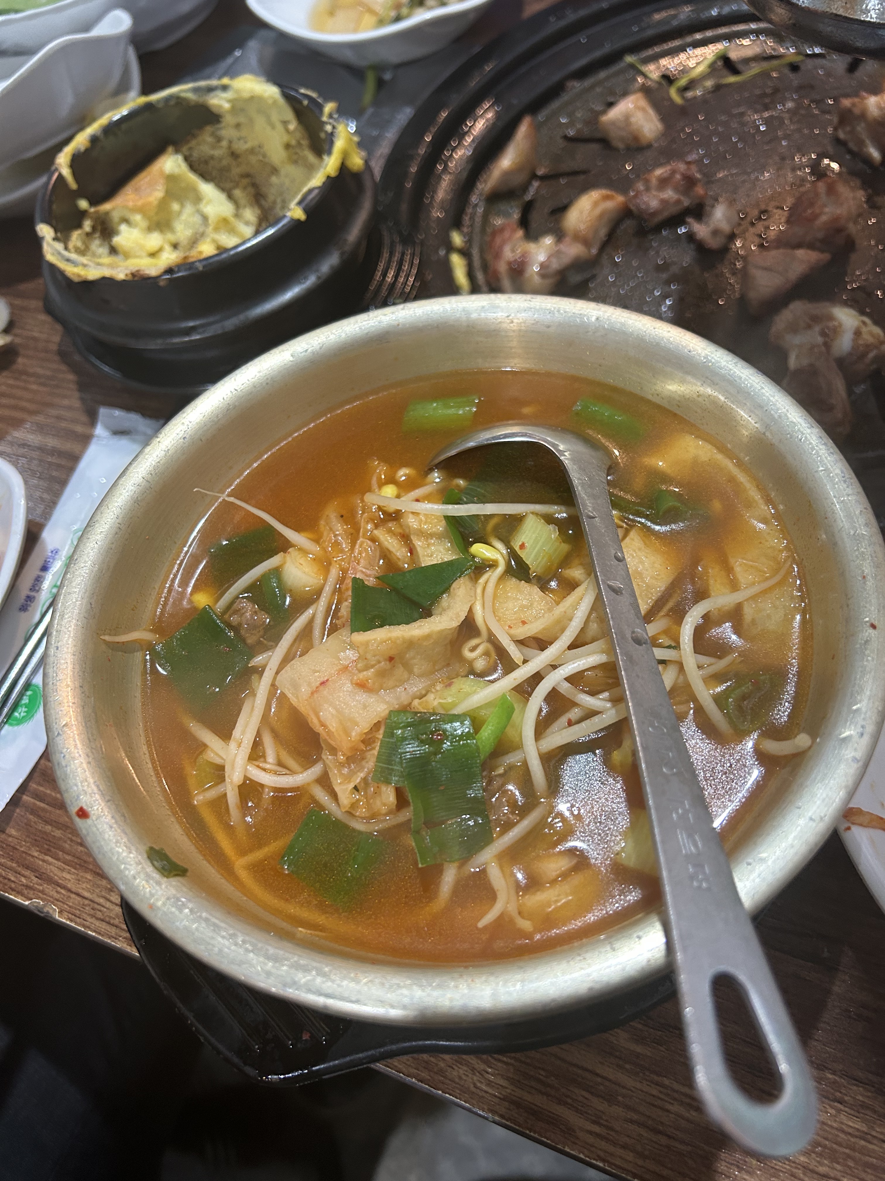 고기와 함께 먹기 좋은 칼칼하고 개운한 느낌의 라면입니다.