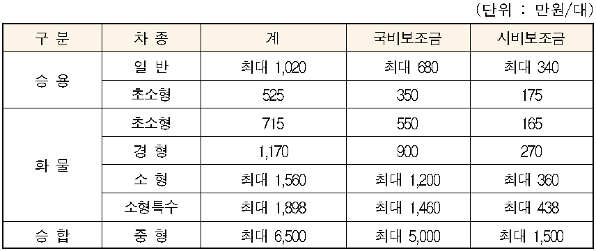 - 차량 출고 및 등록 후 10일 이내에 보조금 지급 신청