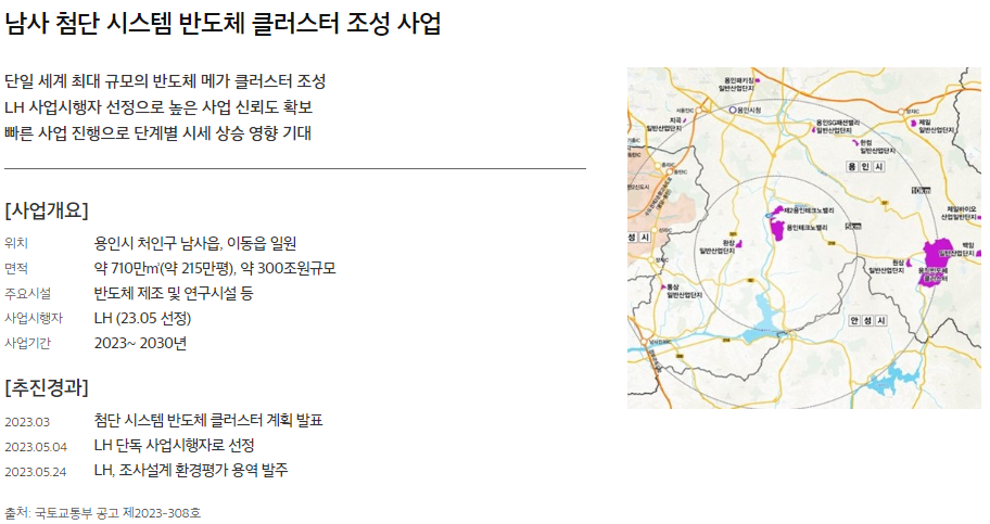 - 남사 국가 산업단지 LH 사업시행자 선정으로 더욱 빨라질 '반도체 메가 클러스터'