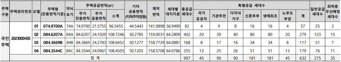 [특별공급 632세대(다자녀가구 특별공급 90세대, 신혼부부 특별공급 181세대, 생애최초 특별공급 181세대, 노부모부양 특별공급 45세대, 국가유공자 특별공급 45세대, 일반(기관추천) 특별공급 90세대 포함)] 및 부대복리시설