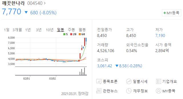 깨끗한나라 '윤석열 관련 없다' 공시에 급락
