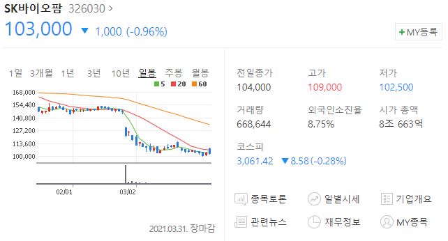 3월 30일 한국 증시 마감 시황(특징주 - SK바이오팜, 깨끗한나라, 아가방컴퍼니, 펄어비스, 오디텍) 주가