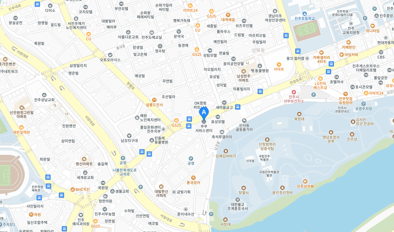 주소 경남 진주시 동진로 123-1(상대동) 쿠쿠진주도동점(지번:상대동 291-20)
