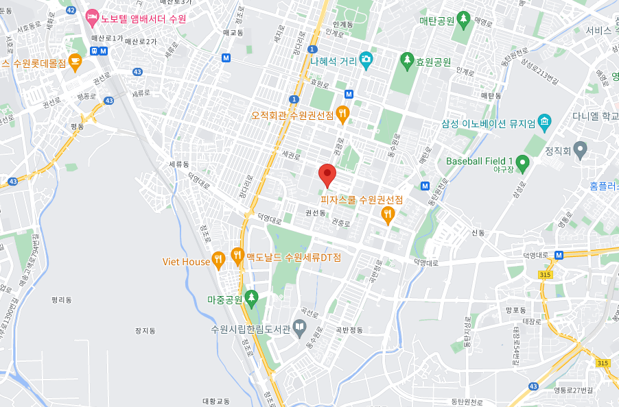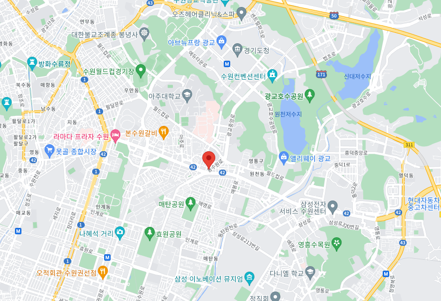 주소 경기도 수원시 영통구 동수원로 533 서광빌딩 1층(지번:원천동 85-23)