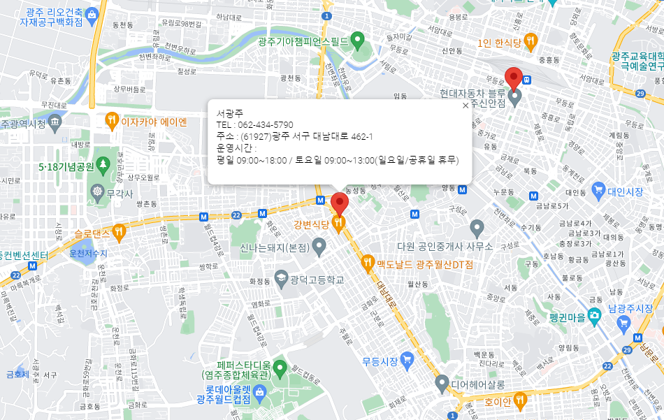 주소 광주광역시 서구 대남대로 462-1(지번:농성동 647-6)