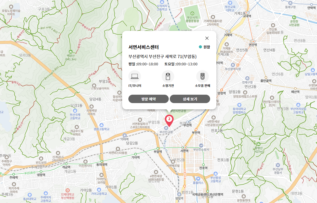 주소 부산광역시 부산진구 새싹로 71 LG 베스트샵 3층(지번:부암동 667-1)