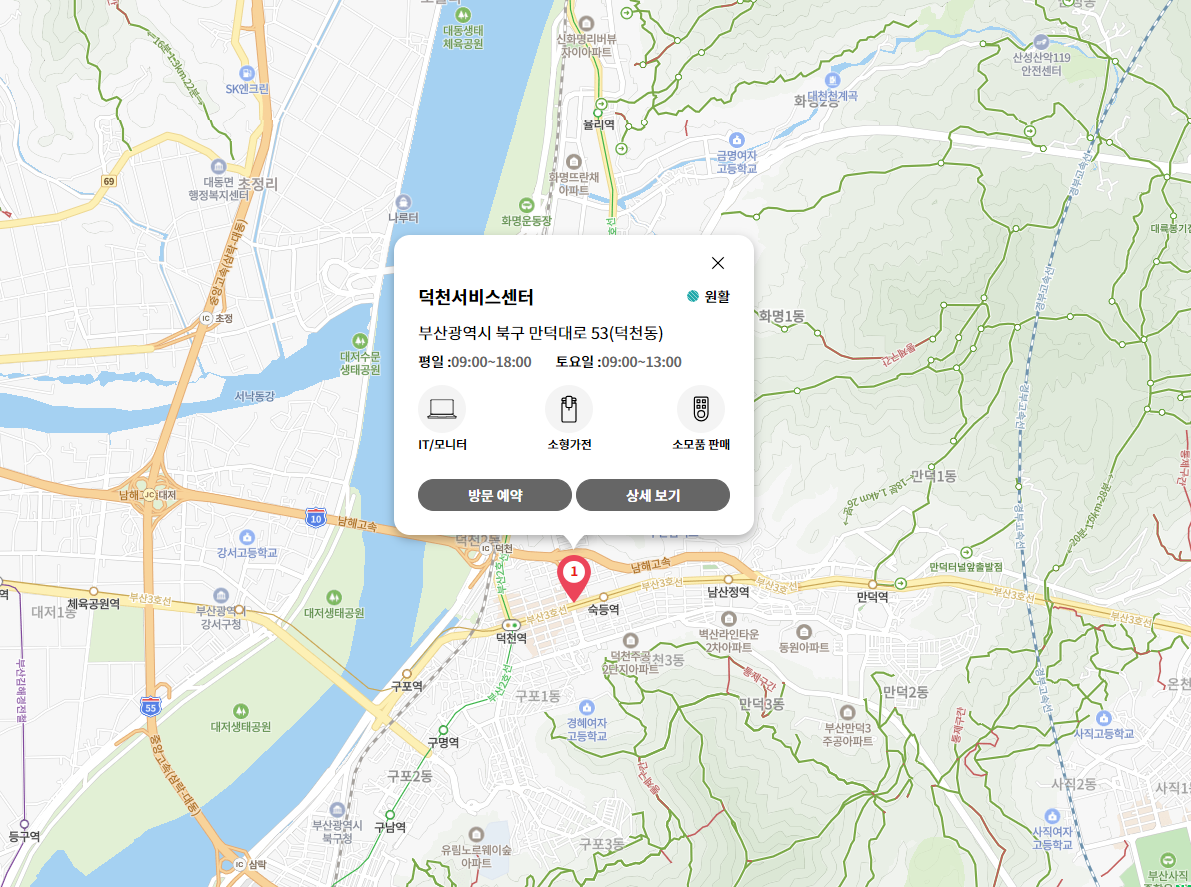 주소 부산광역시 북구 만덕대로 53 LG BEST SHOP 4층(지번:덕천동 380-6)