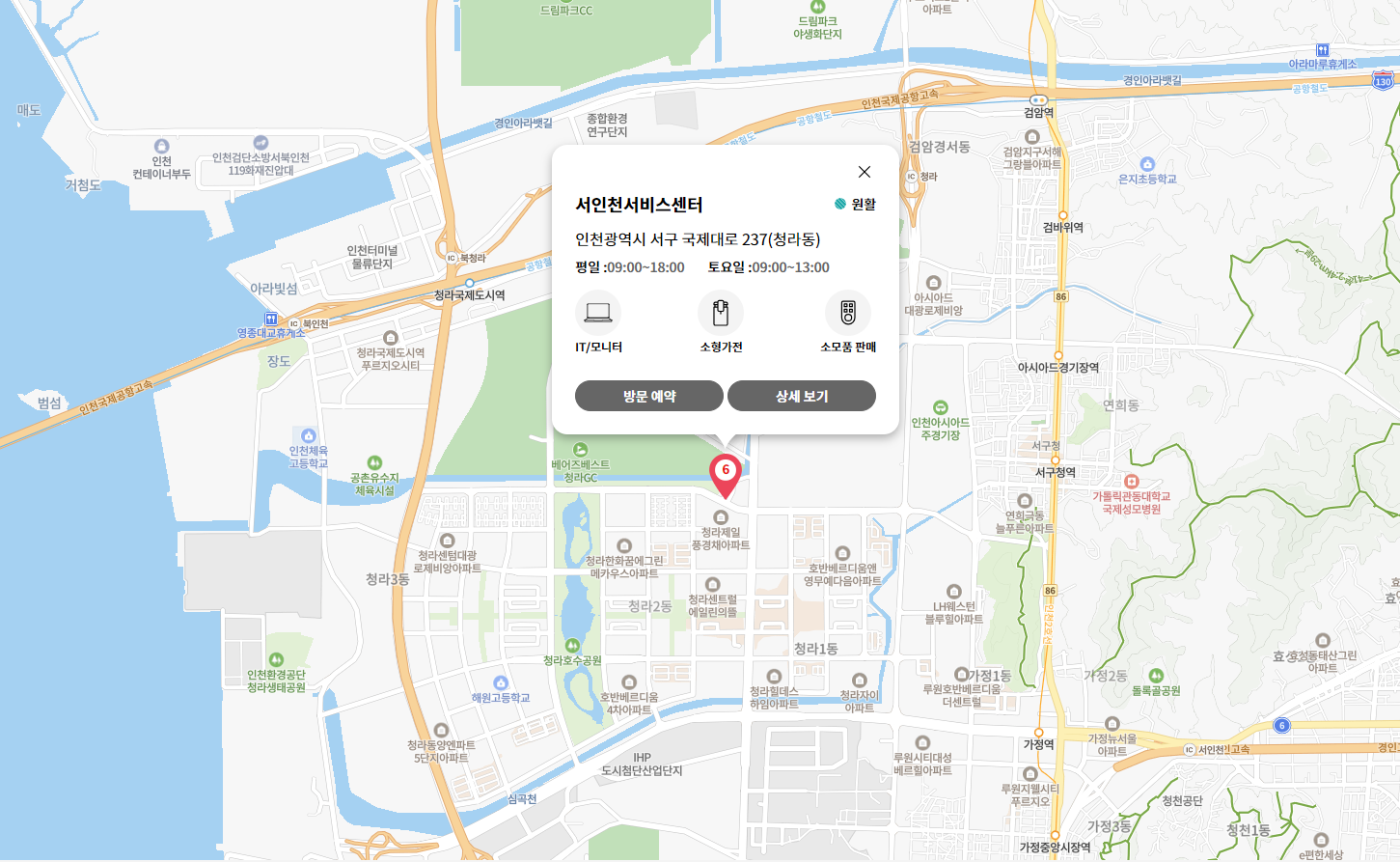 주소 인천광역시 서구 국제대로 237 LG BEST SHOP 3층(지번:청라동 9-93)