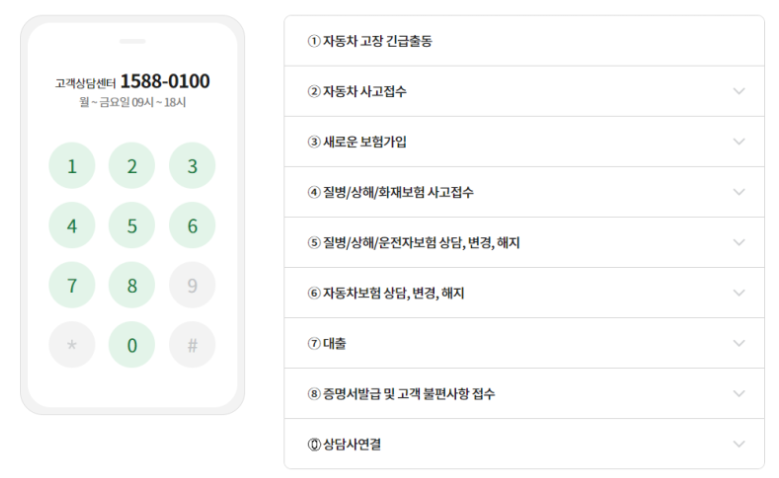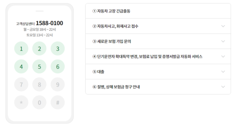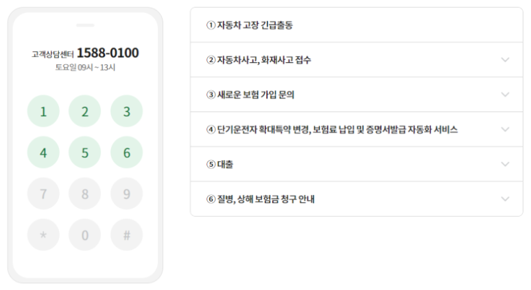 DB손해보험 고객상담센터 토요일 ARS 단축번호