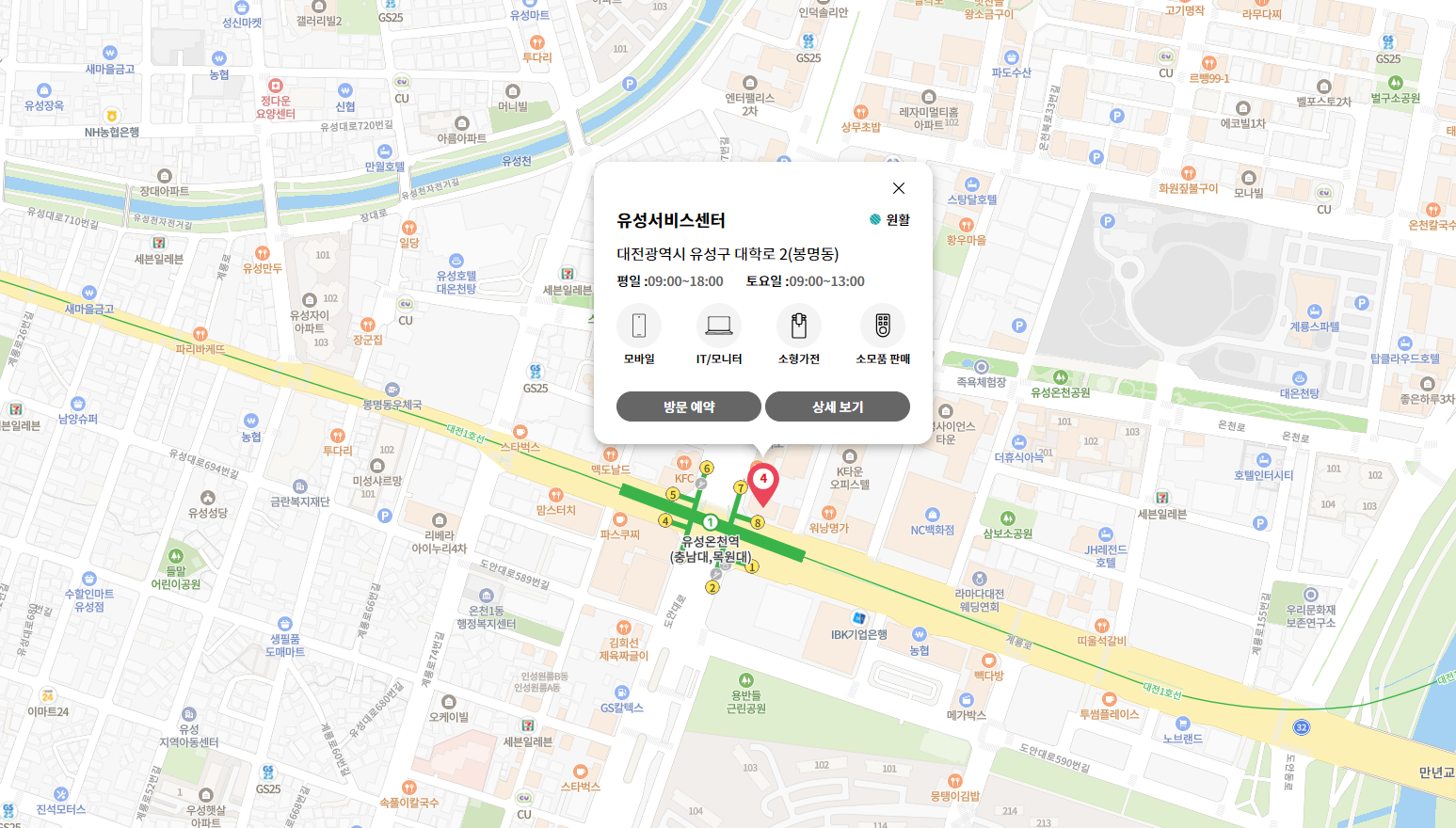 주소 대전광역시 유성구 대학로 2 LG베스트샵 유성온천점 4층(지번:봉명동 551-11)