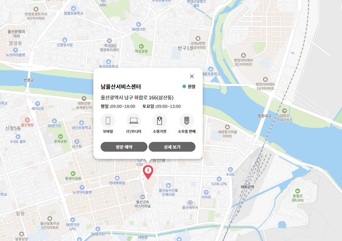 주소 울산광역시 남구 화합로 166 LG BEST SHOP 5층(지번:삼산동 1612-1)