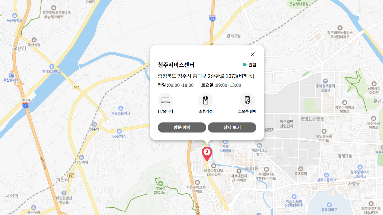 주소 충청북도 청주시 흥덕로 2순환로 1073 LG BEST SHOP 서청주점 2층(지번:비하동 262)