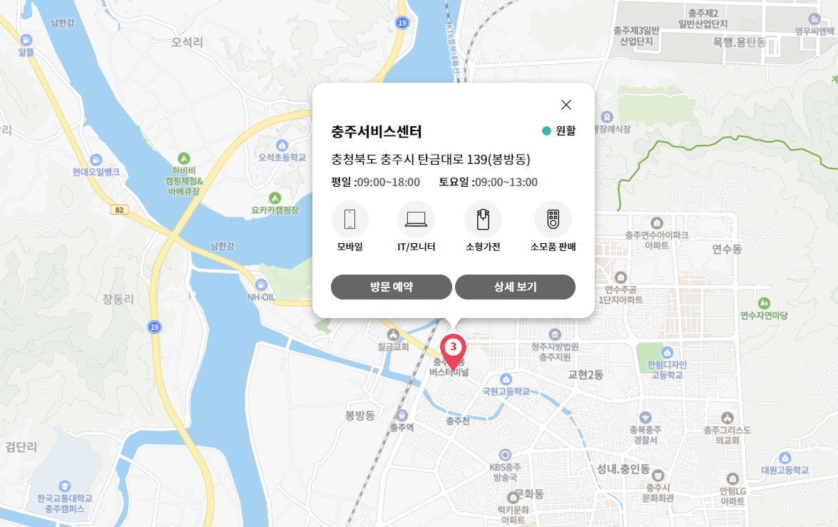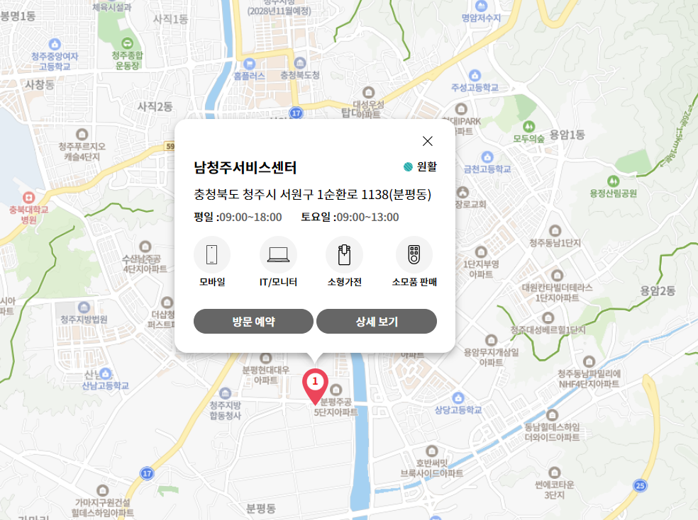 주소 충청북도 청주시 서원구 1순환로 1138 LG BEST SHOP 2층(지번:분평동 564)