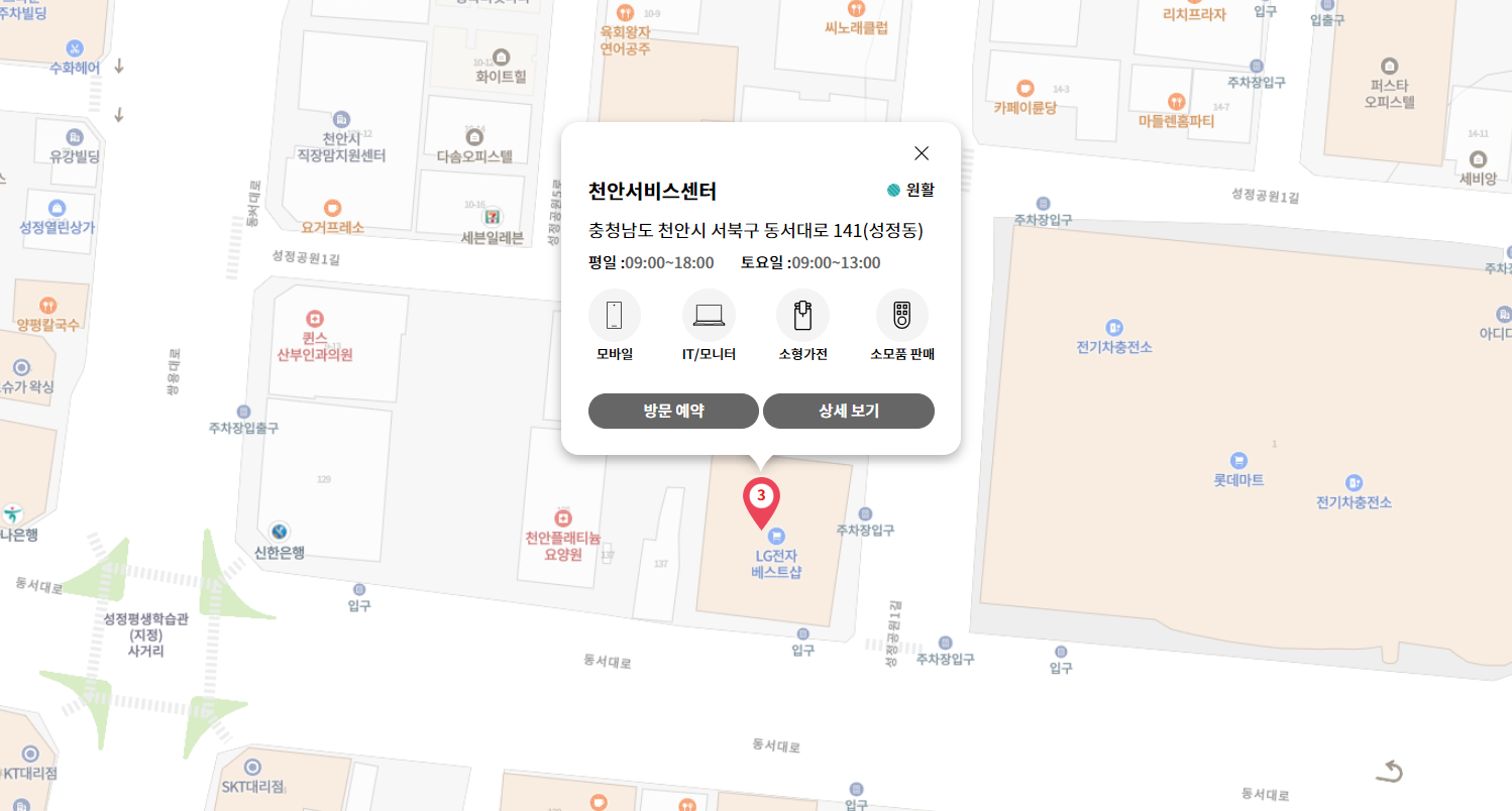 주소 충청남도 천안시 서북구 동서대로 141 LG베스트샵 북천안본점(지번:서정동 1531)