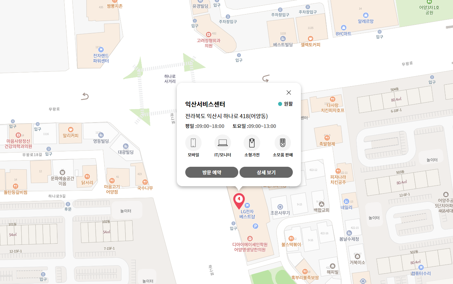 주소 전라북도 익산시 하나로 418 (유)만석 주차빌딩 LG BEST SHOP(지번:어양동 657-1)