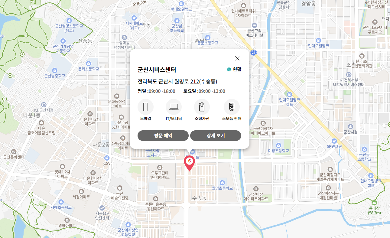 주소 전라북도 군산시 월명로 212 LG BEST SHOP 4층(지번:수송동 852-6)