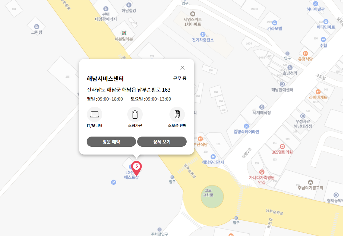 주소 전라남도 해남군 해남읍 남부순환로 163 LG BEST SHOP 2층(지번:고도리 470-2)