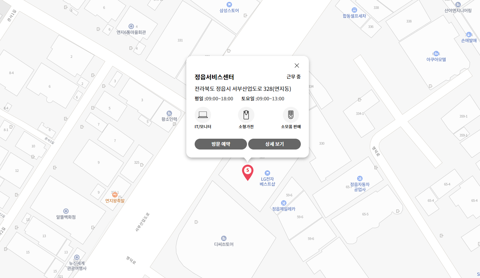 주소 전라북도 정읍시 서부산업도로 328 2층 정읍서비스센터(지번:연지동 327-35)