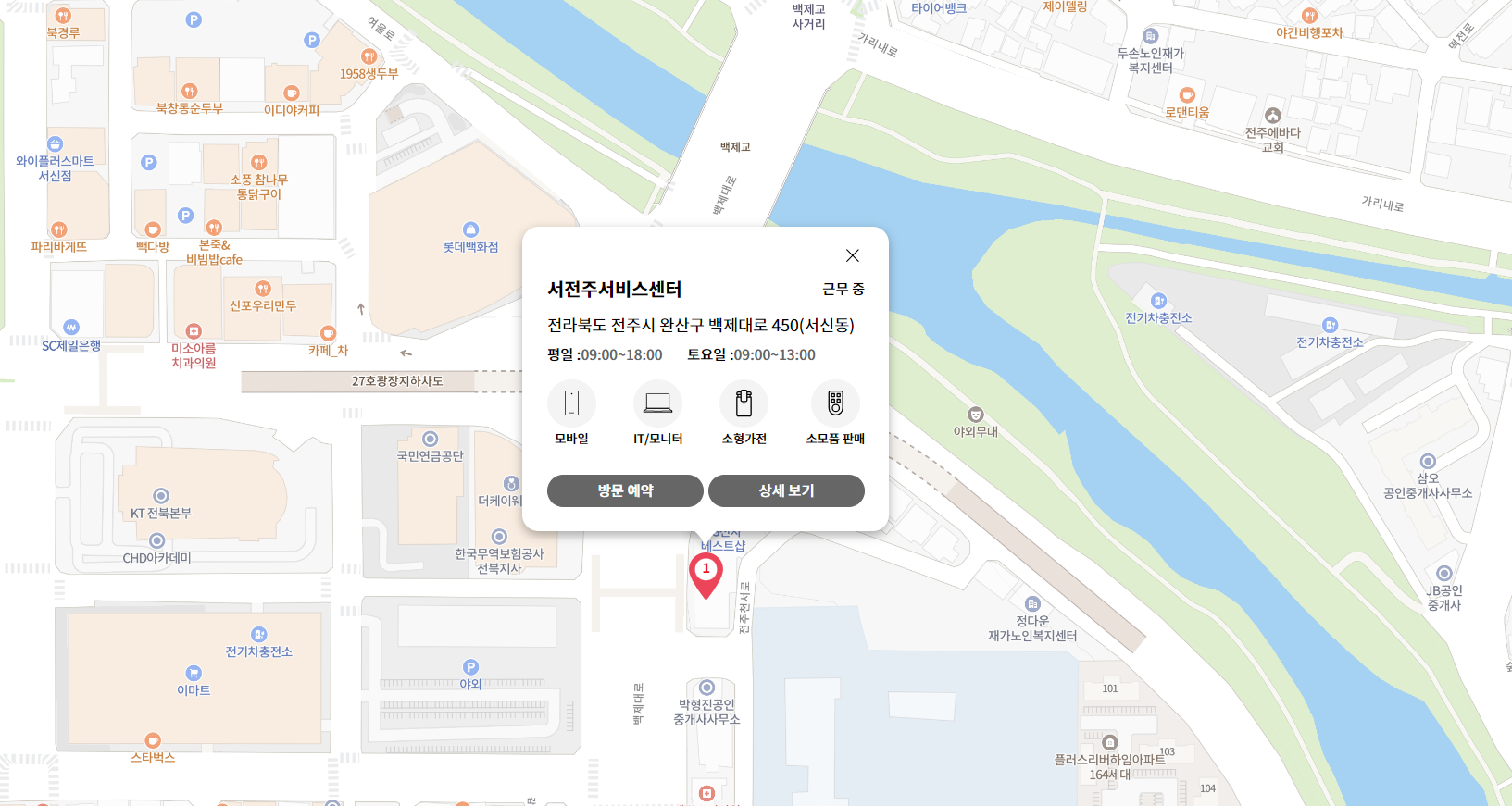 주소 전라북도 전주시 완산구 백제대로 450 LG BEST SHOP 2층(지번:서신동 771)