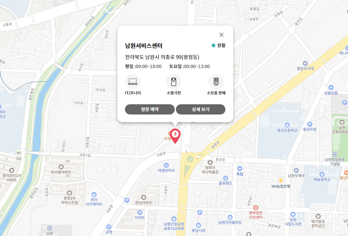 주소 전라북도 남원시 의총로 99 LG BEST SHOP 3층(지번:왕정동 38)