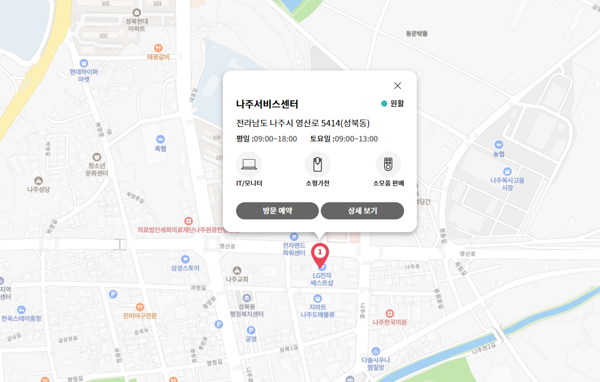 주소 전라남도 나주시 영산로 5414 LG BEST SHOP(지번:성북동 140-8)