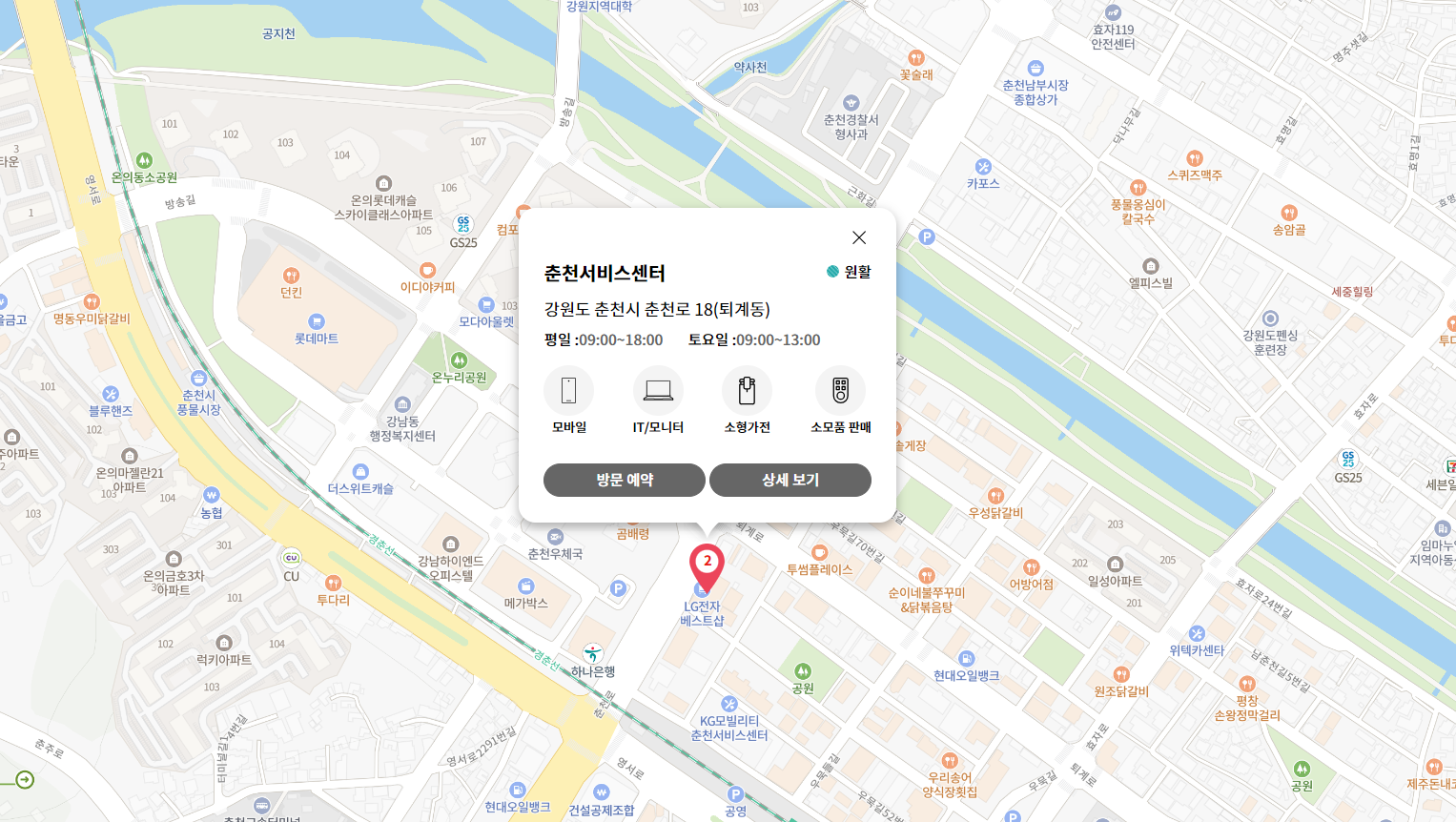 주소 강원도 춘천시 춘천로 18 LG 베스트샵 춘천퇴게점 3층(지번:퇴게동 1187-4)