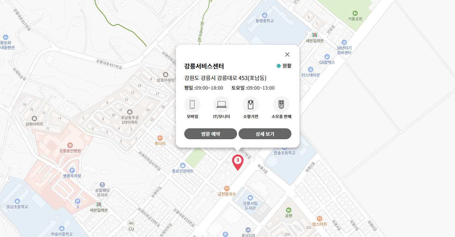 주소 강원도 강릉시 강릉대로 453 LG전자 베스트샵&서비스센터(지번:포남동 1072-4)