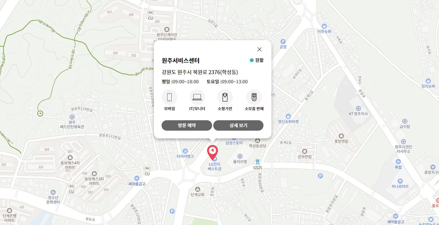 주소 강원도 원주시 북원로 2376 LG 베스트샵 단계점 3층(지번:학성동 978-21)