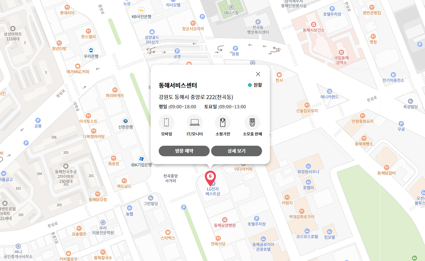 주소 강원도 동해시 중앙로 222 LG 베스트샵 동해점 2층(지번:천곡동 883)