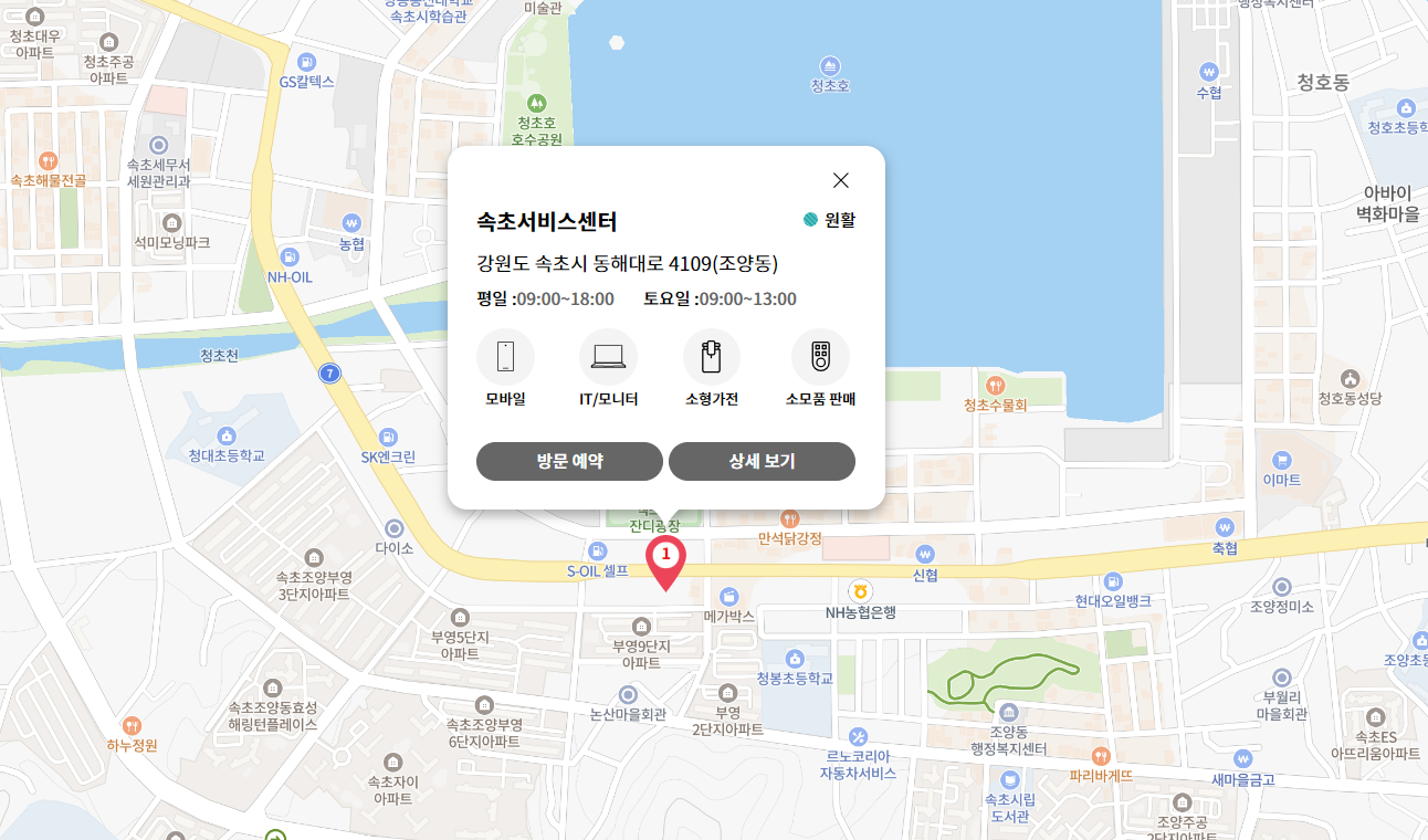 주소 강원도 속초시 동해대로 4109 LG 베스트샵 조양점 3층(지번:조양동 1504-1)