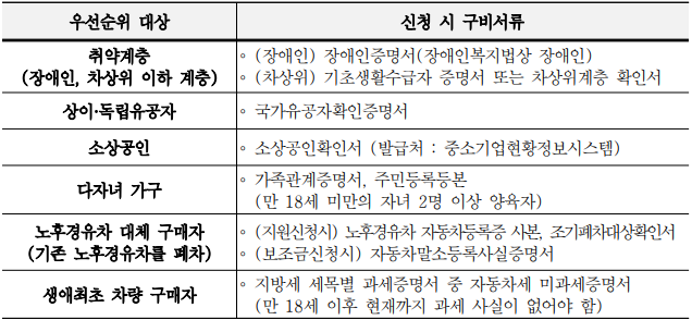 - 차량 출고 및 등록 후 10일 이내에 보조금 지급 신청