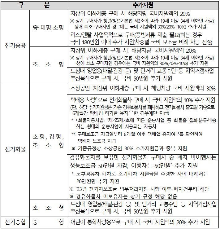 ○ 소상공인 전기 화물차 구매 시 국비 지원액의 30% 추가 지원