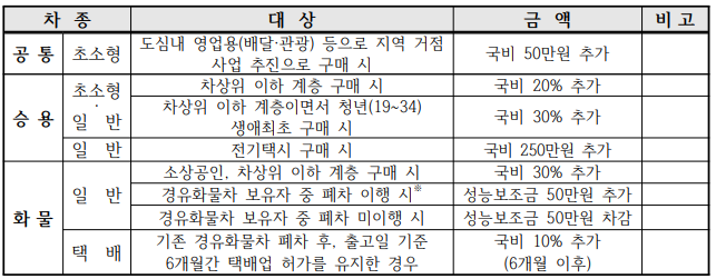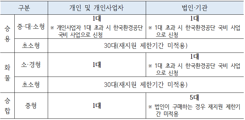※국비지원금액은 보급목표이행보조금 등이 포함된 것으로 변동될 수 있고, 환경부에서 지원대상 차량을 추가할 수 있으므로, 무공해차 누리집(http://www.ev.or.kr)에서 확인 필요