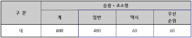 보급대수 : 600대(일반 480대, 택시 60대, 우선순위)
