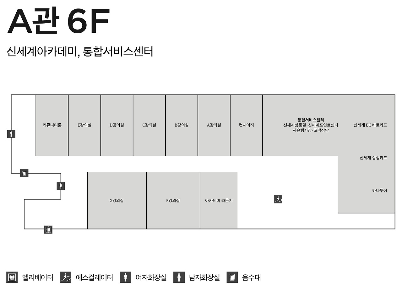 | 6F | 아카데미 | 신세계아카데미 | 041-640-5500 |