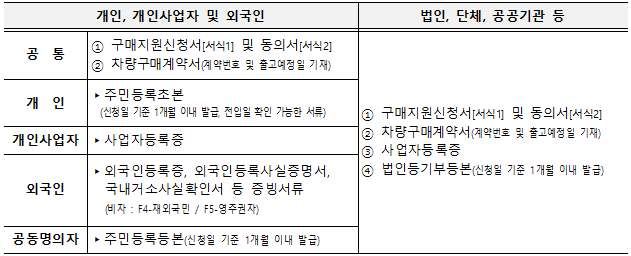 - 차량 출고 및 등록 후 10일 이내에 보조금 지급 신청