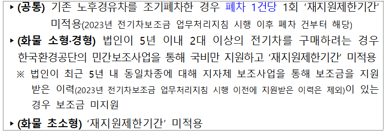 - 최대 1대(재지원 제한기간 : 승용·승합 2년 / 화물 5년)