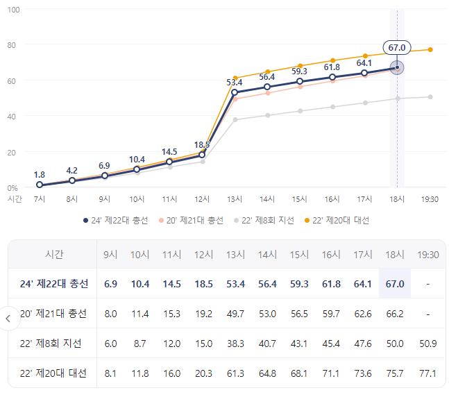 제22대 국회의원선거 전국 투표율