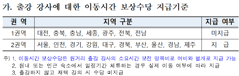 | 대면지도 | 자기주도학습의 날 대면지도 시간 | 일반강사수당 기존 준용 | 4시간 범위 | - |