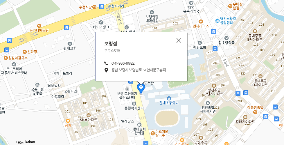 주소 충청남도 보령시 보령남로 31 한내문구슈퍼(지번:명천동 451-4)