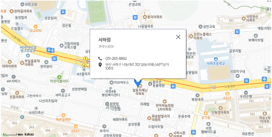 주소 부산광역시 사하구 낙동대로 310 일동지에닌APT상가 106호(지번:괴정4동 571-8)