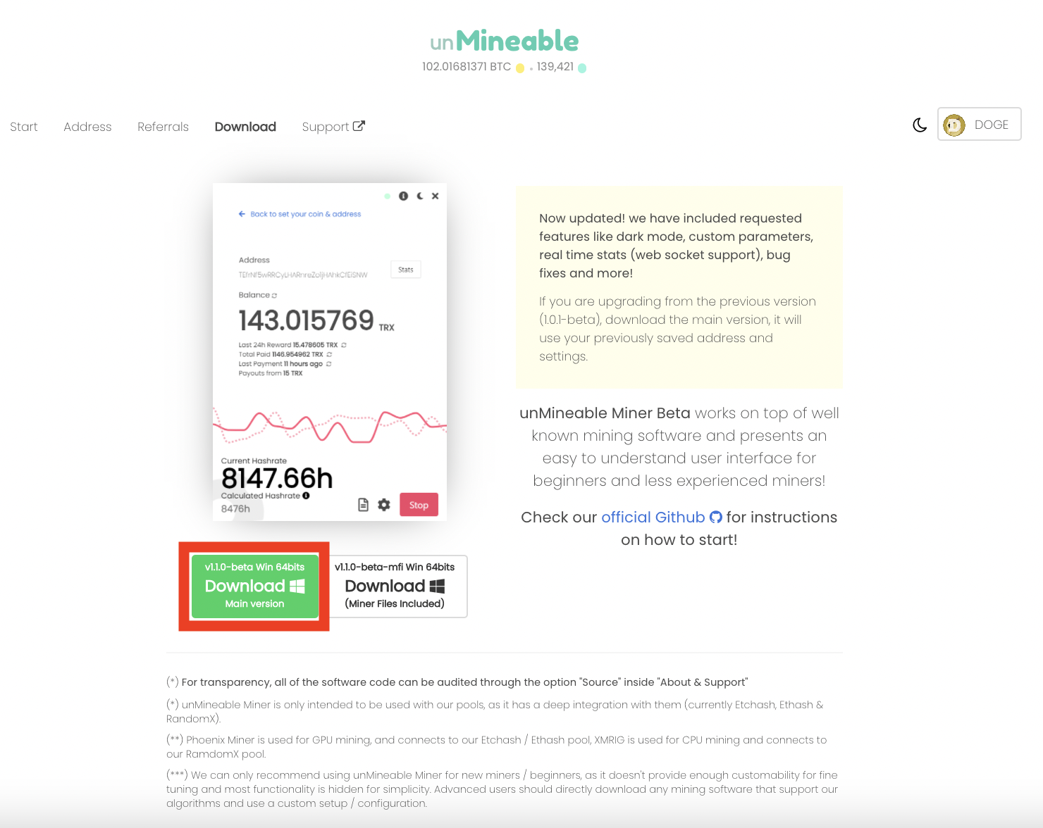 unMineable.Miner.1.1.0-beta-main 이라는 폴더가 다운로드될 것입니다.