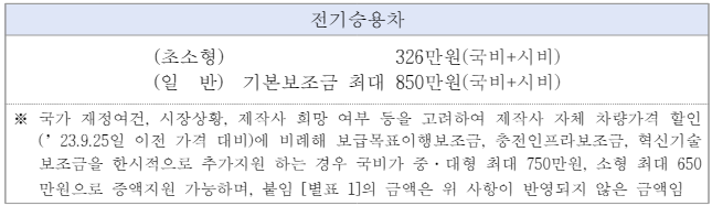 | 제조·수입사 | 차종 | 국고보조금 (만원) |