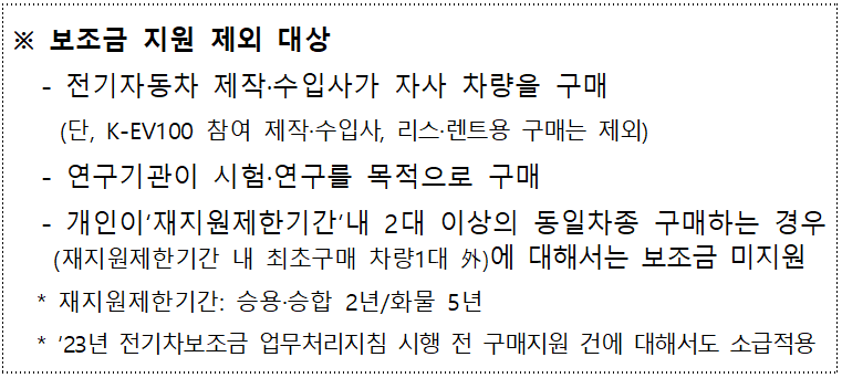 - 최대 1대(재지원 제한기간 : 승용·승합 2년 / 화물 5년)