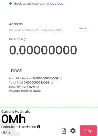 Select a coin or token 은 도지코인(DOGE)으로 선택해주시고