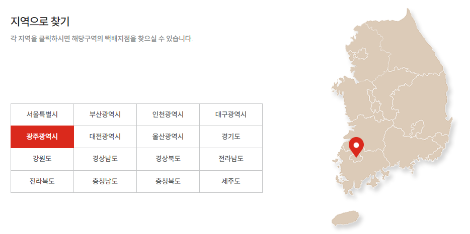 광주광역시 롯데택배 영업소 주소(위치) 및 전화번호