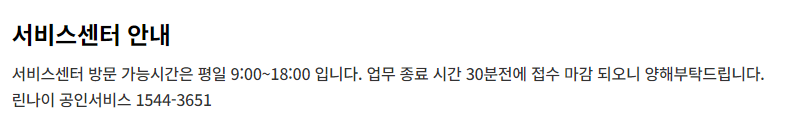 린나이 서비스센터 방문 가능 시간은 평일 09:00 ~ 18:00입니다.