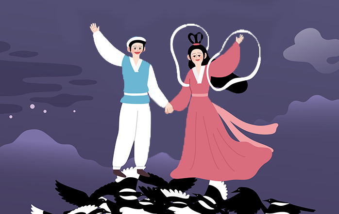 그렇게 까마귀와 까치의 도움으로 은하수 한가운데서 만나게 된 견우와 직녀