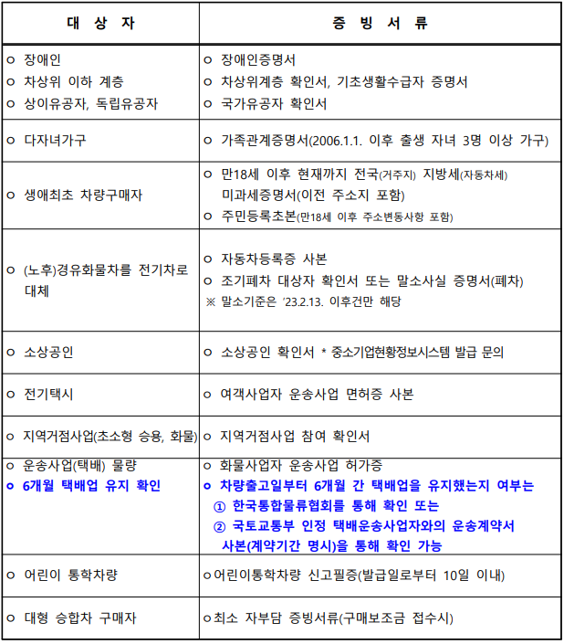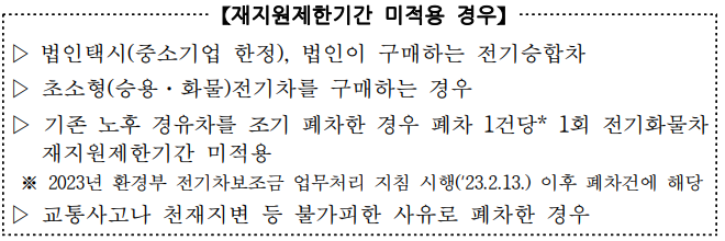 - 차량 출고 및 등록 후 10일 이내에 보조금 지급 신청